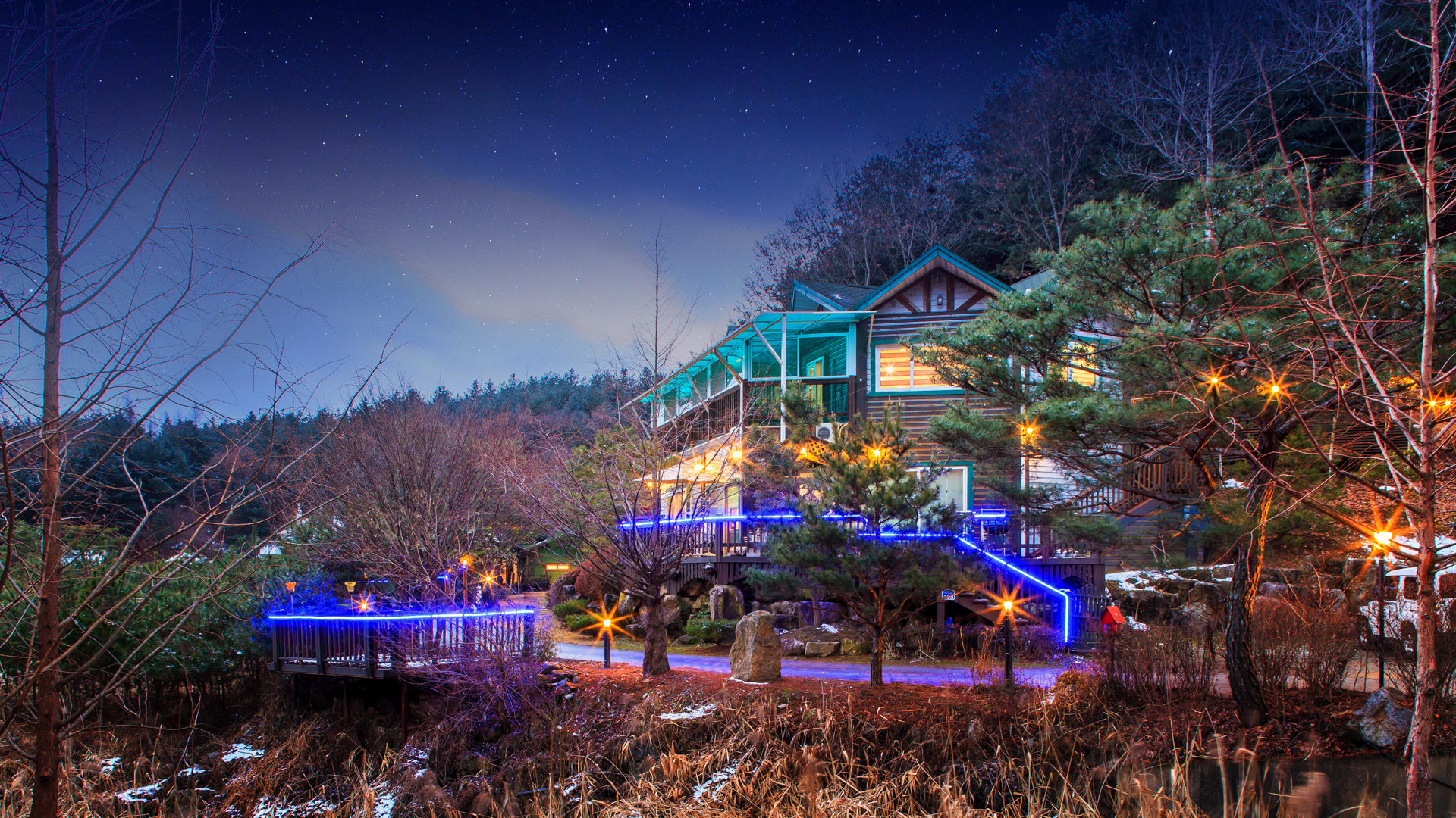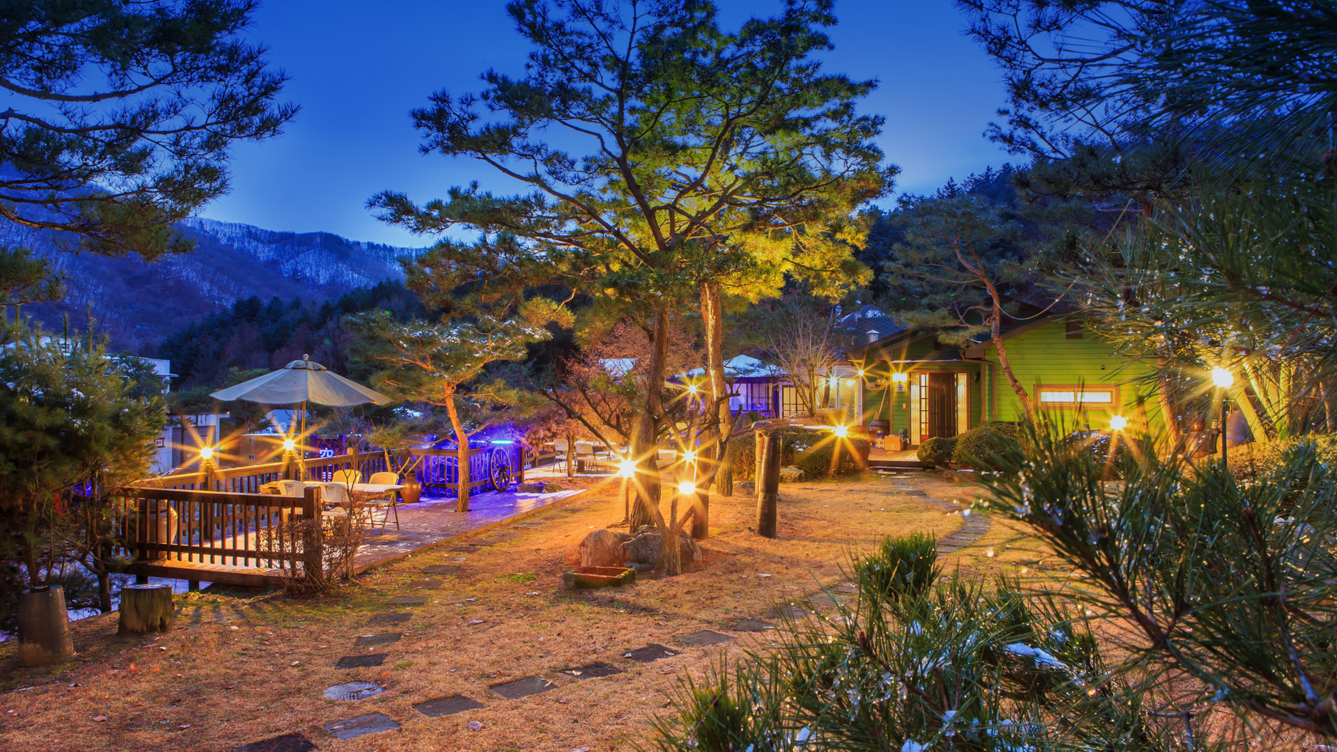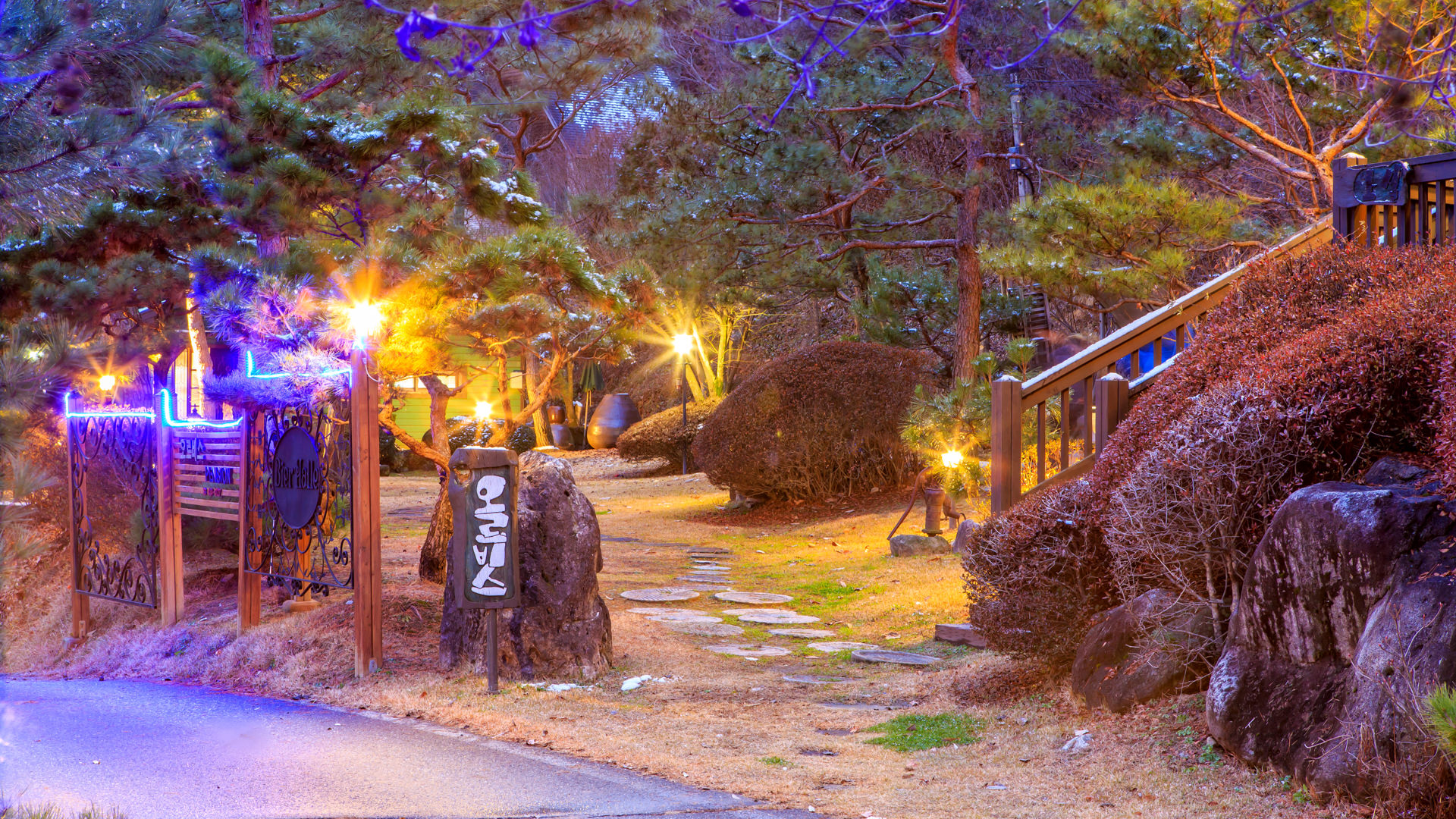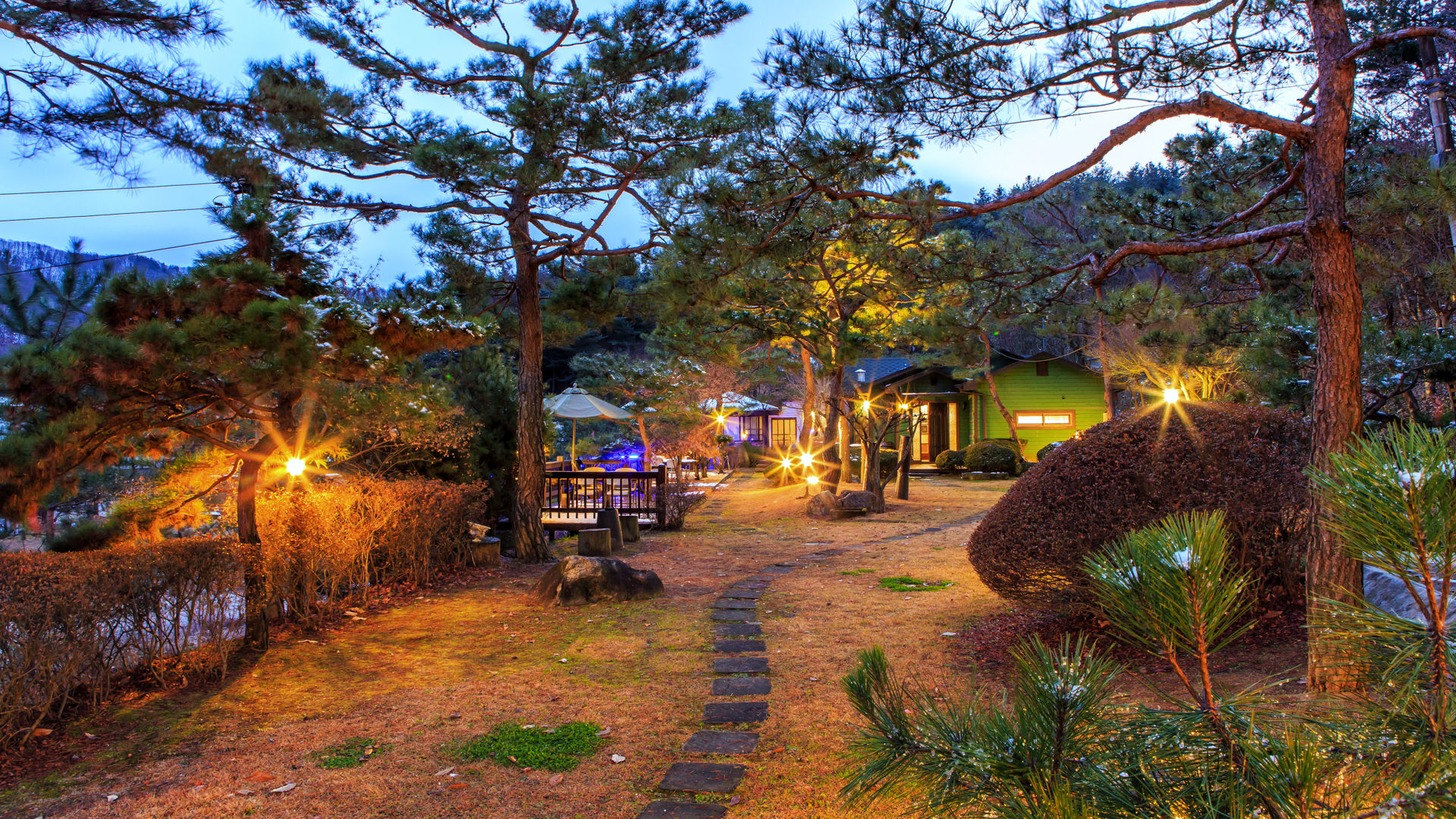 소나무와 야생화가 가득한 넓고 아름다운 정원,